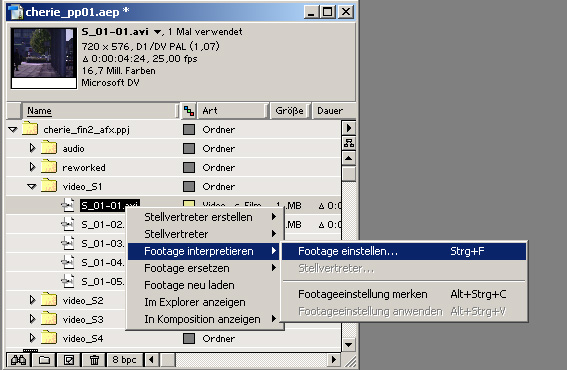 interpretieren > Footage einstellen“ Tastenkürzel: