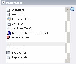 - Im Feld Page types können die Seitentypen bestimmt werden, die von den Benutzern dieser Benutzergruppe verwendet werden dürfen.