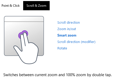 Bei vorhandenen Trackpads kann auch die Geste „pinch to zoom“ die Zoomstufe steuern.