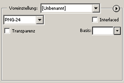 Hier hat der User die Wahl zwischen einem PNG-8-Format, also einer Reduzierung der Farbtiefe auf maximal 256 Farben, und einem PNG-24-Format, dass die Farbtiefe von 24 Bit beibehält.