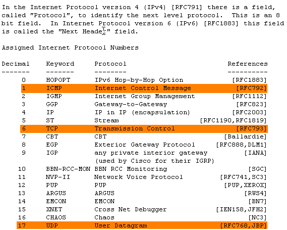 Protokoll 6 steht dabei z.B. für TCP und 17 für UDP: Liste (IANA)