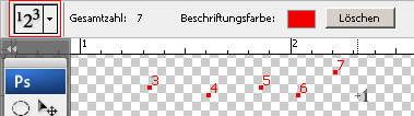 Die Pipette Teilt sich den Menüpunkt noch mit einem Bemaßungswerkzeug und einem Nummerierungswerkzeug: