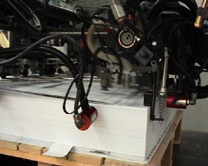 Schließlich wird das Papier auf Paletten in die Ausleger der Druckmaschine