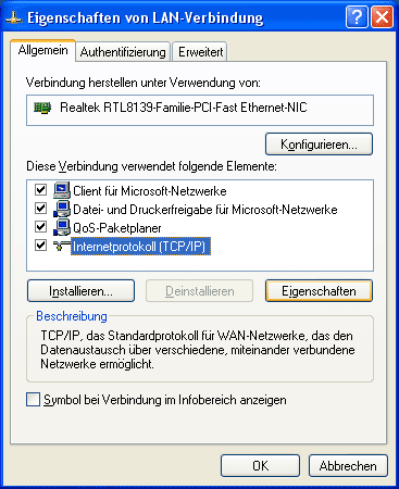 Die Netzwerkkarte bekommt eine eindeutige lokale Adresse (private IP-Adresse). Diese wird benötigt, um den Rechner innerhalb des lokalen Netzes zu identifizieren (und somit auf eindeutige Weise direkt ansprechen zu können). Verwendet wurde ...