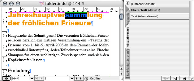 Und jetzt wird einfach dem gesamten Text abwechselnd das Absatzformat "Überschrift (Absatz)" und "Text (Absatzformat)" zugewiesen.