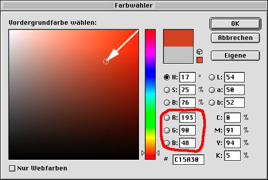 Man beachte, daß sich der cmyk-Wert nicht verändert.