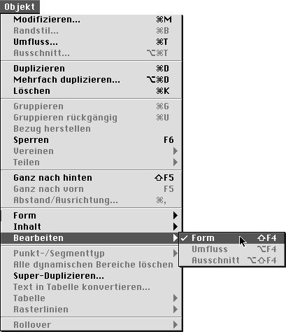 Der zugehörige Menübefehl befindet sich unter ->Objekt ->Modifizieren. Hier kann dann auch der Abstand zwischen den Linien eingefärbt werden, was über die Farbpalette nicht möglich ist. Im Wesentlichen scheinen hier aber nur nochmals alle Eigenschaften einer Linie auf, die auch über die Maßpalette einstellbar sind. Der angewählte Punkt "Augabe unterdrücken" bedeuted, die Linie wird nicht gedruckt, sondern nur am Bildschirm angezeigt. Wer eine Hilfslinie braucht, sollte aber besser mit gedrückter Maustaste eine aus dem Lineal ziehen (wie in den meisten anderen Programmen übrigens auch).