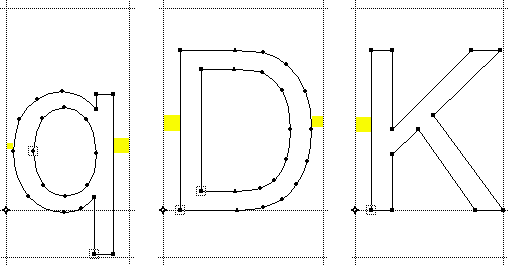 Bézier-Punktarten und Liniensegmente in Fontographer