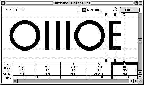 In Fontographer Buchstabenabstände einstellen