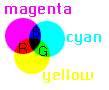 Jeweils die im Farbkreis RGB entgegengesetzte Farbe ergibt die cmy-Farbe.