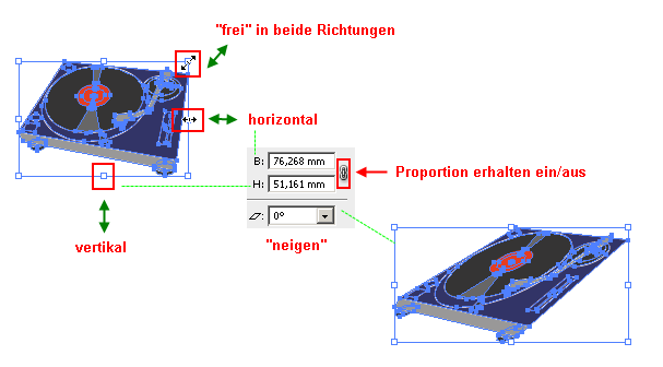 Ein Element einer Gruppe kann aber ggf. mit dem "Direktauswahl Werkzeug" einzeln aus der Gruppe gewählt und berbeitet werden.