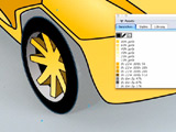 Der Reifen und die Felge müssen nun angeordnet werden. Problem: Der Reifen muss hinter und gleichzeitig vor dem Umrissobjekt liegen. Mit verschiedenen Ebenen wird das gelöst.