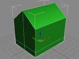 Eine vorgegebene Textur, die in einem Bildbearbeitungsprogramm erzeugt wurde, wird mit dem UnwrapUVW-Modifikator auf das haus übertragen und genau eingepasst.